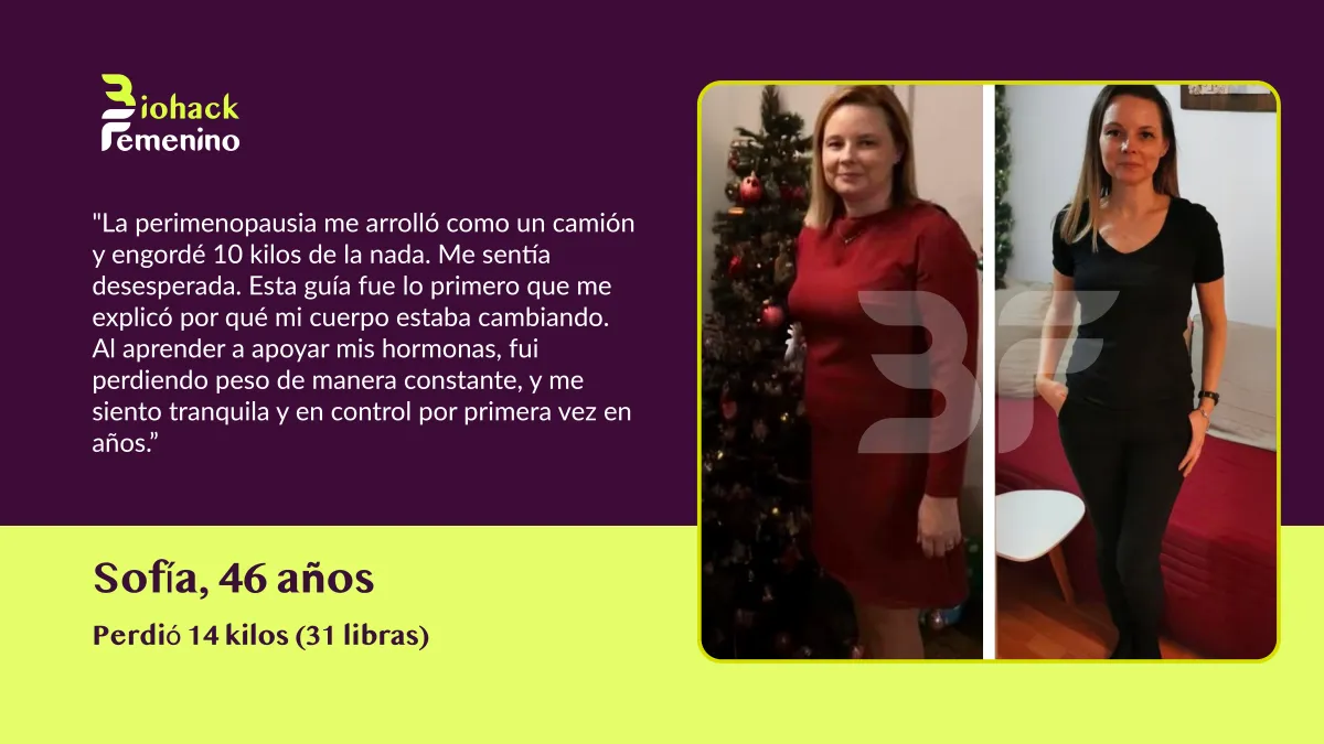 Para mujeres de más de 35 años (premenopáusicas, perimenopáusicas y posmenopáusicas) que están hartas de luchar con su peso y sus hormonas.